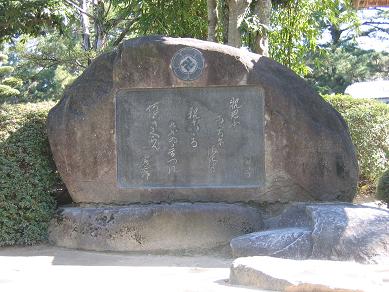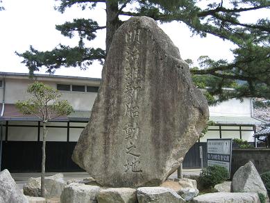 「親思ふこころにまさる親ごごろけふの音づれ何ときくらん」、松陰先生が安政6年(1859)10月20日付けで家族に宛てた遺書の中で詠われた有名な和歌が彫られています。昭和37年(1962)、萩国際ライオンズクラブの承認を記念して奉納、建立されました。 石碑「明治維新胎動之地」 昭和43年(1968)、明治維新100年を記念して建立されました。揮毫は故佐藤栄作元首相です。