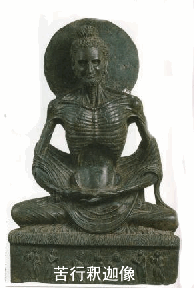 もう一つの苦行ですが、この代表的なものが断食です。釈尊もこの断食を大変熱心にされました。皆様方も有名な「釈迦苦行像」(ラホ−ル博物館蔵)(写真)の実物や写真をご覧になったことがあると思います。しかし、釈尊は結局、断食などの苦行を捨てられ、静かな坐禅の中で悟りを開かれました。